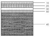 도 2는 본 발명의 제2실시예에 따른 인테리어재의 단면도로서, 도 1의 구조에서 프라이머층(30)과 기재층(40) 사이에 종이층(50)이 추가로 적층된 인테리어재이다.2 is a cross-sectional view of the interior material according to the second embodiment of the present invention, in which the