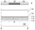 이때, 상기 반투과부(B3)는 마스크(M)에 슬릿(slit)형상 또는 반투명막을 형성하여, 빛의 강도를 낮추거나 빛의 투과량을 낮추어 상기 감광층을 불완전 노광할 수 있도록 하는 기능을 한다.In this case, the transflective portion B3 forms a slit shape or a translucent film on the mask M, thereby lowering the intensity of light or lowering the amount of light transmitted, thereby incompletely exposing the photosensitive layer.