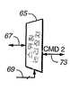 마찬가지로, 호스트로부터의 명령은 접촉부(12)를 통해 직렬 전송되어 레지스터(37)에 저장된 다음에, 제어기(33)에 의해 병렬로 판독된다.  상태 정보는 제어기(33)에 의해 레지스터(39)내로 병렬로 로드되고, 그 후 카드 접촉부(12)를 통해 직렬로 판독된다.  이런 식으로 전송되는 명령과 응답의 종류는 많이 있다.  예컨대, 호스트가 어레이(31) 내에 데이터를 기록해 넣고자 한다면, 기록 명령을 CMD 라인(22)을 통해 전송하고 이어서 기록될 데이터를 DAT 라인(27)을 통해 전송한다.  명령을 받은 기록 동작이 완료된 후에는 제어기(33)는 그 상태 표시를  레지스터(39)에 기록해 넣고, 그러면 호스트는 그 상태를 판독하여 그 명령을 받은 동작이 완료되었는지를 확인할 수 있다.Similarly, commands from the host are serially transmitted through