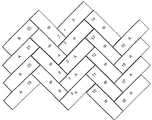 진보된 패턴을 배열하는 공지의 다른 방법은 목재 블록의 모든 가장자리를 따라 그루브를 형성시키는 것이다. 상기 목재 블록이 배열되면, 필요한 위치에서 텅이 상기 그루브 속으로 삽입된다. 그 결과, 근접한 2개의 목재 블록의 텅 그루브에 텅이 체결됨으로써, 목재 블록은 서로에 대하여 수직 방향으로 잠금된다. 선택적으로, 이 방법은 수직 방향으로 마루를 잠금하기 위하여 그리고 하위-마루에 대하여 수직 방향으로 마루를 잠금하기 위하여 접착제칠이 추가된다.Another known method of arranging advanced patterns is to form grooves along all edges of the wood block. Once the wood block is arranged, the tongue is inserted into the groove at the required position. As a result, the tongue is fastened to the tongue grooves of two adjacent wood blocks, whereby the wood blocks are locked in a direction perpendicular to each other. Optionally, this method adds a glue coating to lock the floor in the vertical direction and to lock the floor in the vertical direction relative to the sub-floor.