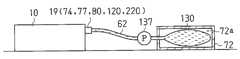 또한, 카트리지(18)의 케이스(39)의 경우는, 그 수용실(41)내에 잉크 팩(42)을 수납하는 구성이었지만, 어태치먼트 본체(49)의 경우에는, 그 내부에 중계부 및 액체 도출 부재로서 기능하는 잉크 도출 부재(60)가 착탈 가능하게 장착되어 있다.  이 잉크 도출 부재(60)는 그 내측이 잉크의 통과를 허용하는 유로 구조, 즉 중계  유로(61)로 되어 있다.  그리고, 그 중계 유로(61)의 상류단이 되는 잉크 도출 부재(60)의 기단(60a)에는 가요성을 갖는 잉크 공급 튜브(액체 공급로)로서의 잉크 튜브(62)의 선단(하류단)(62a)이 연결되어 있다.In the case of the