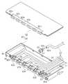 도 8에 도시하는 바와 같이, 이 제 3 실시 형태에 있어서의 어태치먼트(77)는 제 1 실시 형태에 있어서의 어태치먼트(19)를 카트리지 홀더(17)의 소캣부(22)의 병설수와 동일한 수(본 실시 형태에서는 6개)만 병렬 상태로 해서 일체화시킨 형태를 하는 대형의 것이다.  즉, 이 어태치먼트(77)는 제 1 실시 형태에 있어서의 어태치먼트(19)의 어태치먼트 본체(49)와 커버 부재(50)를 각각 6개씩 병설했을 경우에 대응하는 형태의 어태치먼트 본체(78)와 커버 부재(79)를 갖고 있다.As shown in FIG. 8, the