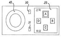 도 2는 상기 이동 장치(10)에 대한 하나의 가능한 사용자 인터페이스를 도시한 것이다. 상기 제1 입력 키(30) 및 상기 제2 입력 키(31)는 상기 디스플레이(20)의 가장자리(21) 부근에, 상기 사용자 입력 장치(40) 및 상기 디스플레이(20) 사이에 배치되어 있다. 본 예에서, 상기 사용자 입력 장치(40)는 5-방향 입력 키이지만, 그것은 조이스틱 또는 회전자 다이얼과 같은 어떤 적합한 유형의 입력 장치일 수 있다. 상기 프로세서(12)는 상기 프로세서(12)에 로딩된 상기 소프트웨어의 제어하에서 그것의 기능을 변경하도록 동작가능하기 때문에 상기 사용자 입력 장치(40)의 기능은 전용되지 않는다.2 illustrates one possible user interface for the mobile device 10. The