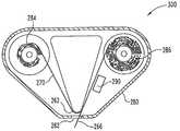 테이프 (270) 를 조립하는 동안, 테이프 (270) 가 날카로운 굽힘부 주위에 놓일 때, 랜싯 층 (264) 의 랜싯 (266) 이 베이스 층 (250) 으로부터 분리되어 테스트 미디어 층 (260) 에 확실히 구멍을 낼 수 있도록 주의를 요한다.     따라서, 테이프 (270) 는 상기한 실시형태에 따라 랜싯 (266) 을 연속적으로 제공하는데 그리고 랜싱 개구 (282) 를 통해 제공된 랜싯 (266) 을 활성화하는데 이용된다.While assembling the