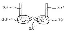 패드(34, 35)는 해부적인 형상으로 형성되는데, 즉 그 크기 및 형상은 전정 내의 시술에 맞추어진다.  물론 필요시에는 서로에 대한 상대위치를 내측아암(32, 33, 33')을 휨으로써 조절할 수 있다.  하나이상의 치료단계에서 하악을 소망의 목표위치로 안내할 필요가 있을 경우, 패드홀더(3)의 수직위치 및 시상적 위치는 언제라도 바꿀 수 있다.The