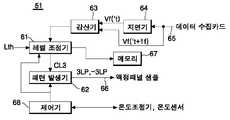 제어기(68)는 레벨조정기(68)를 제어하고 온도감지 데이터, 변조 데이터, 메뉴 데이터를 모니터에 공급한다.  그리고 제어기(68)는 특정 온도에서 각 계조의  최적 변조 데이터가 검색된 후에는 온도 조절기(58)를 제어 하여 온도조절챔버(59) 내의 온도를 가변시킨 다음, 레벨 조절기(61)를 제어 하여 가변된 온도에서 최적 변조 데이터를 다시 검색하게 된다.The