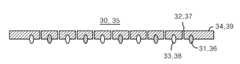 먼저, 도 4에 도시된 바와 같이, 용량 결합 전극(31, 33, 36, 38)은 장벽 구조를 갖되, 그 단면이 'T'형 구조를 가질 수 있으며, 그 머리 부분이 전극 장착판(34)에 고정되도록 설치되거나 그 반대의 배치 위치를 갖도록 설치될 수 있다.  용량 결합 전극(31, 33, 36, 38)은, 도 5에 도시된 바와 같이, 좁은 폭을 갖는 판형 구조를 가질 수 있다.  도 6 또는 도 7에 도시된 바와 같이, 용량 결합 전극(31, 33, 36, 38)은 그 단면 구조가 삼각 또는 역삼각 구조를 갖도록 할 수도 있다.  또는 도 8 내지 도 10에 도시된 바와 같이, 원통의 봉형 구조, 뉘어진 타원 구조나 세워진 타원 구조의 봉형 구조를 가질 수 있다.  이와 같이, 용량 결합 전극(31, 33, 36, 38)은 그 단면 구조가 원형, 타원형, 다각형 구조 등과 같이 다양한 구조를 가질 수 있다.First, as shown in FIG. 4, the