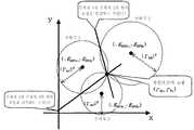 2개의 직선의 방정식인 수학식 6, 7로부터 교점의 좌표(ΓTx,ΓTy)를 도출하면, 수학식 8, 수학식 9가 된다.If the coordinates (ΓTx , ΓTy ) of the intersection are derived from the equations (6) and (7), which are two straight line equations, equations (8) and (9) are obtained.