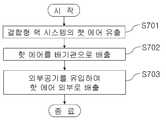 그리고, 결합형 랙 시스템으로부터 배출된 상기 핫 에어를 배기관으로 배출한다(S702). 여기서, 결합형 랙 시스템과 배기관은 외부 공기가 유입되지 못하도록 각각 도킹되어 있으며 그 사이에 배출팬을 구비하여 결합형 랙 시스템의 내부의 핫 에어가 배기관으로 원활히 배출되도록 한다.Then, the hot air discharged from the combined rack system is discharged to the exhaust pipe (S702). Here, the combined rack system and the exhaust pipe are each docked to prevent external air from entering, and having a discharge fan therebetween to allow the hot air inside the combined rack system to be smoothly discharged to the exhaust pipe.