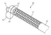 제2와이어(55)는 제1와이어(51)와 마찬가지로 카테터(10)의 루멘에 동축적으로 끼워지는 것으로서, 본선부(56)와 코일부(57)로 이루어진다.  이 제2와이어(55)는 제1와이어(51)와 마찬가지로 전극으로 작용하므로 전기전도성의 금속 재질로 이루어진다.Like the