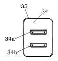 도 5b에 나타낸 바와 같이, 게이트 하우징(31)의 정면에 형성된 모듈 포트(34)는 전력을 공급하는 전력 포트(34a)와 정보선에 액세스하는 정보 신호 포트(34b)로 구성된다.  모듈 포트(34)에서, 전력 포트(34a)와 정보 신호 포트(34b)의 배치, 및 이들 포트 각각의 형상은 이중 배선 시스템에 있어 표준화(규격화)되어 있다.  예를 들면, 도 5b에 나타낸 바와 같이, 전력 포트(34a)와 정보 신호 포트(34b)는 각각, 서로 평행하게 배치되도록 실질적으로 직사각형으로 구성된다.As shown in Fig. 5B, the