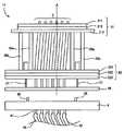 또한  상기  접속 전극부41은,  접속 전극체4의  표면과  하나의  면이  되도록  통(파이프)을  배치한다.  이렇게  배치함으로써,  접속 전극체4의  표면이  하나의  면이  되고,  제2안내판32나  보호부36이  접속 전극체4에  접촉하는  경우에  접속 전극체4  표면에  대하여  직각이  되도록  배치할  수  있어서,  사용할  때에  있어서  접촉자2가  압접되어  휘었을  때에  어느  접촉자2에  대하여도  균일한  하중을  부여할  수  있다.In addition, the