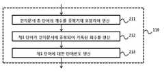 상기 어학학습 컨텐츠 서버는 상기 하나 이상의 서브단어 중 제1 서브단어가 상기 제1 단어에 대응하여 출현한 회수를 연산한다(단계(413)). 상기 어학학습 컨텐츠 서버는 상기 서브단어의 총 개수 및 상기 제1 서브단어의 출현회수를 통해 상기 제1 단어에 대한 상기 제1 서브단어의 공기확률을 연산한다(단계(414)). 상기 어학학습 컨텐츠 서버는 상기 제1 서브단어의 출현회수를 상기 서브단어의 총 개수로 나눈값을 통해 상기 제1 서브단어의 공기확률을 연산할 수 있다.The language learning content server calculates the number of times a first subword of the one or more subwords has appeared in correspondence with the first word (step 413). The language learning content server calculates an air probability of the first subword for the first word based on the total number of the subwords and the number of occurrences of the first subword (step 414). The language learning content server may calculate the air probability of the first subword by dividing the number of occurrences of the first subword by the total number of subwords.