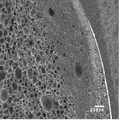 도 2는 제조예 7의 경량골재의 내부 기공과 외부 코팅층을 보여주는 확대사진이다.Figure 2 is an enlarged photograph showing the inner pores and the outer coating layer of the lightweight aggregate of Preparation Example 7.