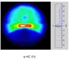 도 9a와 같이 내측 밑각(α)이 30도인 경우 주 출사각이 +10도이고, 도 9b와 같이 40도인 경우에는 주출사각이 +5도이며, 도 9c와 같이 42.5도인 경우에는 주 출사각이 거의 0도이고, 도 9d와 같이 45도인 경우에는 주 출사각이 -5도내지 -7도이다. 그리고 도 9e와 같이 내측각이 50도인 경우에는 -20도에서 +60도까지 고른 집광효과 및 휘도 특성을 가지고, 주 출사각이 -10도임을 알 수 있다. 이외의 각도, 즉 내측 밑각(α)이 30도 미만이거나 5도를 초과하는 경우 주 출사각이 ㅁ 10도를 벗어남을 알 수 있다.As shown in FIG. 9A, when the inner bottom angle α is 30 degrees, the main exit angle is +10 degrees. In the case of 40 degrees as shown in FIG. 9B, the main exit angle is +5 degrees. In the case of almost 0 degrees and 45 degrees as shown in Fig. 9d, the main exit angle is -5 degrees to -7 degrees. In addition, as shown in FIG. 9E, when the inner angle is 50 degrees, it has a light condensing effect and luminance characteristics evened from -20 degrees to +60 degrees, and the main emission angle is -10 degrees. If the other angle, that is, the inner base angle α is less than 30 degrees or more than 5 degrees, it can be seen that the main exit angle is ㅁ 10 degrees.