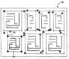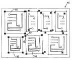도 2A 및 도 4B에서, 기판(12)의 각 타겟(82)은 전기 회로부(56)에 대하여 정확한 방향으로 기판(12)의 표면에 형성되는 마이크로비아(microvias)(84)의 배열이다. 가령, 도 2A에서와 같이 마이크로비아(84)는 전기 회로부(56)에 관한 정확한 위치에서 형성되는 것 이외에도 기판(12)의 표면으로부터 쉽게 보여지기 때문에, 비록 가끔씩 표면 층(58)과 같은 불투명한 오버레이에 의해 덮여지더라도, 마이크로비아(84)는 타겟(82)으로 사용하기에 편리하다. 그러나, 이미 형성된 전기 회로부(56)에 대하여 정확히 위치하고 있다면 어떤 다른 적절한 타겟들(82)도 사용될 수 있다. 또 다른 적절한 형태의 타겟(82)의 한 예는 가령, 전기 회로를 따라 형성된 주어진 형태의 구리(도시되지 않음) 타겟을 포함한다.2A and 4B, each