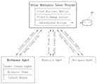 동 도면에 도시된 바와 같이, 워크스페이스에이전트는 참여자 컴퓨터(10)에 구현된 가상작업공간의 화면, 즉 참여자가 공유상태로 설정한 데이터, 응용프로그램 등의 화면을 캡처(Capture)하는 스크린캡처엔진(Screen Capture Engine)과, 가상작업공간서버프로그램으로부터 네트워크를 통하여 전달된 화상정보를 표시하는 워크스페이스뷰어(Workspace Viewer)와, 화상정보와 입력장치신호를 네트워크를 통하여 송수신하는 네트워크모듈(Network Module) 등으로 구성된다.As shown in the figure, the workspace agent is a screen capture engine for capturing a screen of a virtual workspace implemented in a