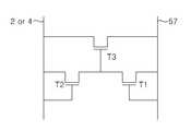 정전기 방지회로(60)는 공통라인(57)과 데이터 라인(4) 사이에 접속된 제1 내지 제3 트랜지스터(T1 내지 T3)로 구성되어 있다.The