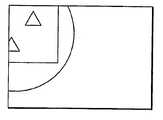 노드 워처 알고리즘의 동작을 좀더 잘 이해하기 위해, 도 12(a), 도 12(b), 도 13(a) 및 도 13(b)을 참조하여 일례를 설명할 것이다. 도 12(a) 및 도 12(b)는 2가지 상이한 확대 레벨들에서의 주밍 가능 GUI 일부를 도시한다. 도 12(a)의 더 낮은 확대 레벨에서는, 3개의 노드: 원, 삼각형 및 타원을 볼 수 있다. 도 12(b)에서는, 타원 및 원은 부분적으로만 볼 수 있고, 삼각형은 완전히 시야를 벗어나도록, 뷰가 줌인되었다. 이러한 노드들은, 예를 들어, 효율적인 이벤트 통지에 의존하는 애플리케이션들 또는 유저 인터페이스 컴포넌트들을 표현할 수 있으므로, 본 발명의 예시적 실시예들에 따른 노드 워처 알고리즘에 의해 추적된다. 이 예에서는, 도 12(a) 및 도 12(b)에 각 노드에 대한 경계 직사각형들이 명시적으로 도시되어 있지만, 당업자들은, 경계 직사각형들이 통상적으로는 GUI에 디스플레이되지 않는다는 것을 알 수 있을 것이다. 도 12(a) 및 도 12(b)에서는 경계 직사각형들 각각의 각 변이 레이블링되어 있고, 이러한 레이블들은 경계 직사각형의 변들과 상술 된 전이 블록 데이터 구조 간의 대응 관계를 나타내는데 사용될 것이다.To better understand the operation of the node watcher algorithm, an example will be described with reference to FIGS. 12 (a), 12 (b), 13 (a) and 13 (b). 12 (a) and 12 (b) show some of the zoomable GUIs at two different magnification levels. At the lower magnification level of FIG. 12A, three nodes: circles, triangles and ellipses are visible. In Figure 12 (b), the view is zoomed in so that the ellipses and circles are only partially visible and the triangle is completely out of view. Such nodes may be tracked by a node watcher algorithm in accordance with exemplary embodiments of the present invention, for example, as they may represent applications or user interface components that rely on efficient event notification. In this example, although the bounding rectangles for each node are explicitly shown in FIGS. 12A and 12B, those skilled in the art will appreciate that the bounding rectangles are typically not displayed in the GUI. 12 (a) and 12 (b), each side of each of the boundary rectangles is labeled, and these labels will be used to indicate the correspondence between the sides of the boundary rectangle and the transition block data structure described above.