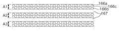 이 때, 상기 마스크를 통한 빔 패턴의 폭은 그레인의 측면성장 길이(그레인의 길이)의 두배 또는 그 이하로 하며, 결정화된 영역은 상기 마스크의 투과 영역(도 3의 114a)에 대응하는 부분이며, 이 투과 영역(114a)에 대응하여 결정화 영역 또한 가로방향으로 소정의 길이를 가지는  결정 영역(A1, A2, A3)이 형성되고, 상기 마스크의 차단 영역(도 3의 114b)에 대응하여 비정질 실리콘 영역(167)이 형성되어 있다.At this time, the width of the beam pattern through the mask is twice or less than the lateral growth length (grain length) of the grain, and the crystallized region is a portion corresponding to the transmissive region (114a of FIG. 3) of the mask. In addition, crystal regions A1, A2, and A3 having a predetermined length in the transverse direction are formed in correspondence with the
