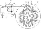 일 실시예에 있어서, 상기 메인 전원 공급원으로부터 제공되는 상기 무선 주파수를 제공 받아 상기 복수개의 안테나 전극으로 분배하는 분배 회로를 포함하고, 상기 분배 회로는 상기 복수개의 안테나 전극 중 서로 다른 두 개의 무선 주파수 안테나가 상호 전위차를 갖도록 무선 주파수의 위상을 달리하여 공급한다.In one embodiment, a distribution circuit for receiving the radio frequency provided from the main power supply source for distributing to the plurality of antenna electrodes, the distribution circuit comprises two different radio frequency antennas of the plurality of antenna electrodes Are supplied with different phases of radio frequency so as to have mutual potential difference.