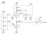 상기 전류 소오스부(220)는 제 1 트랜지스터(P21)를 포함한다. 상기 제 1 트랜지스터(P21)는 게이트에 접지단(VSS)이 연결되고 소오스와 드레인에 상기 제 1 노드(node C)와 상기 제 2 노드(node D)가 연결된다.The