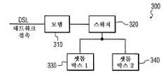도 3은 네트워크 접속 및 게이트웨이 디바이스를 통해 통신하는 네트워크 인에이블된 셋톱 박스를 나타내는 시스템(300)의 블록도이다.  시스템(300)은 네트워크 접속을 통해 인터넷으로 그리고 그로부터 통신하는 모뎀(310)을 제어하는 스위치(320)를 개시한다.  본 예에서, 셋톱 박스(330 및 340)는 근거리 네트워크 접속을 통해 스위치(320)에 접속된다.  셋톱 박스(330)를 동작하는 부모가 아이가 셋톱 박스(340) 상에서 시청하고 있는 미디어 오브젝트에 관한 것을 알고 싶어하는 경우에, 셋톱 박스(330)는 셋톱 박스(340)로부터 IGMP 테이블 정보의 정보 다운로드를 위한 요청을 전송한다.  이 정보는 근거리 네트워크 상의 셋톱 박스에 의해 액세스되거나 셋톱 박스(340)로부터 직접적인 모든 미디어 오브젝트에 관한 정보를 유지하는 스위치(320)로부터 전송될 수 있다.  셋톱 박스(330)는, 요청된 정보를 수신하면, 셋톱 박스(340)에 의해 액세스되고 있는 미디어 오브젝트의 현재 멀티캐스트 어드레스에 대한 IGMP 테이블을 체크하고 그러한 미디어 오브젝트를 렌더링한다.  선택적으로, IGMP 테이블에 지시된 멀티캐스트 어드레스는 셋톱 박스(330)에 있는채널 파일에 대하여 체크되거나 또는 셋톱 박스(340)에 의해 액세스되고 있는 멀티캐스트 어드레스의 식별을 위한 추가의 채널 식별자 정보가 셋톱 박스(330)에 의해 스위치(320)를 통해 인터넷으로 요청된다.  상기 요청된 정보는 셋톱 박스(330)로 다시 전달되며, 여기에서 멀티캐스트 미디어 오브젝트는 특정 멀티캐스팅 어드레스에서 결합될 수 있다.3 is a block diagram of a