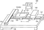 그리고, 헤드 유닛(101)을 부주사 방향(X 방향)으로 구동하기 위한 X 방향 가이드 축(102)과, X 방향 가이드 축(102)을 회전시키는 X 방향 구동 모터(103)를 구비하고 있다.  또한, 스테이지(104)를 부주사 방향에 대하여 직교하는 주주사 방향(Y방향)으로 가이드하기 위한 Y방향 가이드 축(105)과, Y방향 가이드 축(105)에 걸어맞춰 회전하는 Y방향 구동 모터(106)를 구비하고 있다.  이들 X 방향 가이드 축(102)과 Y방향 가이드 축(105)이 상부에 마련된 기대(107)를 갖고, 그 기대(107)의 하부에, 제어 장치(108)를 구비하고 있다.And the X direction guide