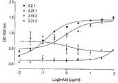 도 10은 용량반응관계에 있어서, 마우스의 교차반응성(cross-reactivity)을 나타내는 선그래프이다. 단클론 항체 클론인 5.2.1, 5.28.1, 3.19.3 및 3.31.2가 도시되었다.FIG. 10 is a line graph showing cross-reactivity of mice in a dose response relationship. FIG. Monoclonal antibody clones 5.2.1, 5.28.1, 3.19.3 and 3.31.2 are shown.