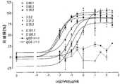 도 5는 Eahy 926 내피세포에서 mAb 3.19.3에 의한, Ang-1으로 촉진된 타이-2의 인산화 억제를 보여주는 선그래프이다.  Ang-1 유래성 타이-2 인산화의 억제가 이들 시스템에서 관찰된다.  항체의 농도는 nM로 표시된다.  IC50 = 99nM이다.  x 축은 mAb 3.19.3의 농도이고, y 축은 반응정도를 나타낸다.FIG. 5 is a line graph showing phosphorylation inhibition of Ang-1 promoted Ty-2 by mAb 3.19.3 in Eahy 926 endothelial cells. Inhibition of Ang-1 derived ty-2 phosphorylation is observed in these systems. The concentration of the antibody is expressed in nM.
