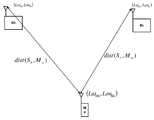 그리고 나서, 측정된 도착 시간과 이론적 도착 시간 간의 차이를 계산함에 의해 각 측정에 대한 오차가 계산되며, 이때 각 셀 사이트 송신기에 대한 주어진 위치,이동국 측정이 수행된 위치, 및 사이트의 시간 오프셋을 가정하였다.Then, measured arrival time And theoretical arrival time By calculating the difference between, the error for each measurement is calculated, where a given position for each cell site transmitter Where the mobile station measurement was performed , And time offset of site Assume