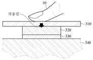 도 4는 센서 셀(300)의 구성을 도시한 단면도이다. 센서 셀(300)의 기본 구성은 촉각센서와 액추에이터(320)를 포함한다. 기본적으로 포인팅 오브젝트(10)에 의하여 작용 힘이 인가되고 그 촉각정보를 인식하는 매체인 플렉시블한 기본 판(310)과 기본 판(310)의 하부에 위치하고, 작용 힘을 감지하고, 멀티플렉서(230)와 연결된 촉각센서(330)가 있다. 기본 판(310)은 별로로 구성되어 지지 않고, 초 광대역 무선통신기능을 갖는 촉각센서모듈(100)이 외부 전자기기(500)에 직접부착되는 경우, 터치스크린 표면이나 로봇(600)의 표면, 디스플레이부 표면이 될 수도 있다.4 is a cross-sectional view showing the configuration of the