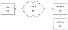 일 실시예에서, 하나 이상의 사용자 인터페이스(115) 컴포넌트는 전자 디바이스(110)와 일체로 이루어진다(예컨대, 개인 휴대 단말기(예컨대, 소니(사)의 Clie®와 같은)와 동일한 하우징내의 키패드 및 비디오 디스플레이 스크린 입출력 인터페이스).  다른 실시예에서, 하나 이상의 사용자 인터페이스(115) 컴포넌트(예컨대, 키보드, 포인팅 디바이스(마우스, 트랙볼 등), 마이크로폰, 스피커, 디스플레이, 카메라)는 전자 디바이스(110)와 물리적으로 분리되며, 또한 종래와 같이 연결된다.  사용자는 인터페이스(115)를 사용하여, 전자 디바이스(110), 서버(130) 또는 네트워크(120)를 통해 연결된 원격 저장 디바이스(도시 안됨)에 저장된 컨텐트 및 어플리케이션을 액세스 및 제어한다.In one embodiment, the one or