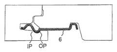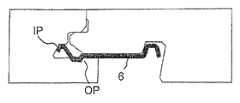도 11a ~ 도 11j는, 금속 시트 바람직하게는 알루미늄으로 제조된 스트립(6)을 구비한 실시예를 도시한다.  디자인은 스트립(6)이 단지 벤딩에 의해 형성될 수  있도록 선택되었다.  이는 높은 정확성 및 싼 가격으로 이루어질 수 있다.  충분한 강도가 0.4 ~ 0.6mm의 금속 시트 두께를 구비하여 이루어질 수 있다.  모든 실시예는 내부(IP) 및 외부(OP) 배치를 허용하고, 스트립의 상방(Ub1, Ub2) 및 하방(Db1, Db2) 각운동을 방지한다.  연결 가장자리 부분은 또한 큰 로타리 기기에 의해 제조될 수 있다.11a to 11j show an embodiment with a