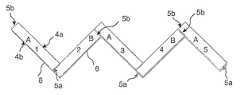 다른 실시예에 따르면, 새로운 열에서 가장 앞의 B판을 앞선 열에서의 가장 마지막의 A판에 연결하는 방식으로 구부려서 평행한 열로 놓인다.According to another embodiment, they are bent in parallel rows in such a way as to connect the first B plate in the new row to the last A plate in the previous row.