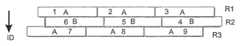 도 3a는, 긴 면(4a)을 짧은 면(5a)에 대해 구부림으로써 B형식의 마루판이 A형식의 마루판에 어떻게 연결되는지를 도시한다.  B마루판(2)은 짧은 면(5b) 상에서 텅을 갖지 않기 때문에 A마루판(3)에 대해 아래로 구부러질 수 있다.  숫자 1 ~ 3은 설치의 적합한 순서를 의미한다.  놓이는 방향(ID)에 가로로 도시되는 제 1 열(R1)은 안쪽으로 구부림으로써 연결될 수 있으며, 도 3b에 따라서 연결 가장자리  등을 따라 삽입된다.3A shows how the B type floorboard is connected to the A type floorboard by bending the