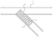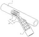 이후, 마커(22, 43)에 유의하여 제 2 스텐트를 분지혈관(2)의 개구부에 정확히 위치시키고, 제 1 스텐트를 직경방향으로 가압하여 팽창시켜 주혈관(1)의 내벽에 밀착시킨다.Subsequently, paying attention to the