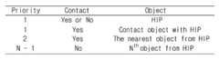 객체근간 장면 세그먼테이션부(156)는 객체 스트림들 각각을 추적하며(object tracking) 그 객체 스트림들 각각에 사용자 선호 정보(user preference information)에 상응하는 우선순위를 할당한다(priority assignment). 도 3을 예로 들어 설명하면, 햅틱 장비 사용자는 햅틱 장비를 조작하는 동안에는 햅틱 장비의 HIP가 디스플레이되는 것에 대해 가장 큰 관심을 갖기 마련이고(이를 표현하는 것이 도 3에 기재된 "Priority 1, contact 'yes or no'(=HIP는 가상 객체와 충돌한 상황 하의 HIP일 수도 있고 충돌하지 않은 상황 하의 HIP일 수도 있음), Object=HIP(즉, 우선순위 1의 객체 스트림은 햅틱 장비의 HIP임)"임) 그 다음으로 관심을 갖는 것은 'HIP에 보다 근접한 가상 객체의 객체 스트림이 HIP에 덜 근접한 가상 객체의 객체 스트림보다 먼저 혹은 최소한 동시에는 디스플레이 되는 것'이기 마련이다(이를 표현하는 것이 도 3의 "Priority 1, object= contact object with HIP", ..., "Priority (N-1), object= Nth object from HIP").The object-to-object