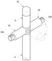이를 보다 상세히 살펴보면, 지주용 심재 보강 원주목(A)의 수평방향으로 일정한 각도로 꺾인 관통공(140')을 형성하고, 상기 관통공(140')의 내부에는, 외주연부에 숫나사선이 형성된 연결구(520)가 상기 관통공(140')의 꺾임각에 대응하도록 꺾여 형성된 연결봉(510)의 양측으로 구비된 연결부재(50)를 위치시킨다.Looking at this in more detail, the through-hole 140 'is formed to be bent at a predetermined angle in the horizontal direction of the core material reinforcement column (A) for holding, the male thread is formed in the outer periphery of the through-hole 140' The