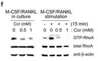 (d) 골수유래 대식세포를 30 ng/ml의 M-CSF 및 100 ng/ml의 RANKL을 5일간 처리하여 분화시킨 파골세포에 1 mM 농도의 Ccr을 3시간 동안 처리 후 FITC-phalloidin으로 actin 염색. 바 크기, 200 mm.(d ) Actin staining with FITC-phalloidin after treatment with bone marrow-derived macrophages treated with 30 mM ng / ml M-CSF and 100 ng / ml RANKL for 5 days after treatment with 1 mM Ccr for 3 hours . Bar size, 200 mm.