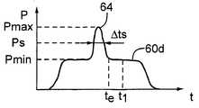 도 3a와 도 3b는 각각 종래 기술에서 사용된 종래의 레이저 펄스 전력 프로파일과 실질적으로 정사각형 레이저 펄스 프로파일을 도시한다. 도 3c는 레이저 펄스의 시작시 나타나는 상당한 오버슈트 또는 "스파이크"(62)를 구비한 특별히 맞추어진 레이저 펄스 전력 프로파일(60c)을 이용하는 본 발명의 일 실시예를 도시한다. 오버슈트의 첨두 전력은 Pmax이고, 레이저 펄스의 평균 전력은 Pmin이다. 오버슈트의 진폭은 Pmax - Pmin으로 한정된다. 오버슈트의 폭 또는 "스파이크"(Δts)는 Pmax와 Pmin 사이의 중간 전력 점(Ps)에서의 전체 지속 시간으로서 한정된다. 오버슈트 또는 "스파이크"의 첨두 전력(Pmax)은 레이저 펄스의 평균 전력(Pmin)에 대해, 약 10% 내지 약 50% 정도가 되는 것이 바람직하다. 오버슈트 또는 "스파이크"의 폭(Δts)은 레이저 펄스의 지속 시간의 10% 내지 50%인 것이 바람직하다. 스파이크의 상승 시간은 통상 약 5㎱보다 짧고, 약 2㎱보다 짧은 것이 바람직하다. 도 3d는 레이저 펄스의 시작은 아니지만 레이저 펄스 동안 나타나는 오버슈트 또는 "스파이크"(64)를 구비한 전력 프로파일(60d)을 이용하는 본 발명의 또 다른 실시예를 도시한다. 오버슈트 또는 "스파이크"는 링크 재료가 레이저 에너지에 의해 완전히 제거될 때의 시각인 t1 전에 있는 시각(te)에서 끝난다. 편의상, "스파이크"라는 용어가 레이저 펄스 동안에 발생하는 것과는 상관없이 레이저 전력에서의 상당한, 일시적인 증가를 가리키기 위해, 본 명세서의 나머지 부분 전체에 사용된다.3A and 3B respectively show a conventional laser pulse power profile and a substantially square laser pulse profile used in the prior art. FIG. 3C illustrates one embodiment of the invention utilizing a specially tailored laser