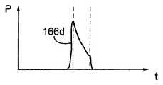 도 5a를 참조하면, 제 2 실시예에서 E-O 게이팅 디바이스(150)는 다이오드 펌핑된, Q-스위칭된 고체 상태 레이저(152)로부터 전파하는 레이저 펄스의 전력 프로파일을 구체화한다. 레이저(152)는 다수의 레이저 펄스(160)(도 5b에 도시된 것)를 제공하고, 이들 각각의 레이저 펄스는 전체 폭, 절반 최대(FWHM; full width, half maximun)에서 비교적 긴 레이저 펄스 폭을 가진다. FWHM 펄스 폭은, 예를 들어 약 30㎱ 내지 50㎱일 수 있다. 레이저 펄스(160)는 E-O 게이팅 디바이스(150)를 통해 전파한다. 출력 레이저 펄스 전력 프로파일은, 구동 전자 장치(164)로부터 제공된 구동 전압 펄스(162)의 폭과 모양, 및 레이저 펄스(160)와 E-O 디바이스(150)에 인가된 구동 전압 펄스(162) 사이의 지연 시간에 좌우된다. 출력 레이저 펄스는 도 5c에서 레이저 펄스(166c)에 관해 도시된 바와 같이, 상방으로, 실질적으로 선형으로 기울어진 (증가하는) 전력 프로파일을 가질 수 있고, 도 5d에서 레이저 펄스(166d)에 관해 도시된 바와 같이, 레이저 펄스가 막 시작할 때 더 높은 첨두를 가진 실질적으로 선형으로 기울어진 (감소하는) 전력 프로파일을 가질 수 있다. 첨두점 이후의 총체적인 전력 감소는 레이저 출력 펄스의 평균 전력의 약 10%보다 많다. 당업자라면 E-O 디바이스(150)에 인가된 전압 펄스 자체의 폭과 모양이 레이저 펄스(166)의 폭과 전력 프로파일을 맞추는데 있어서 더 큰 유연성을 제공하도록 맞추어질 수 있다는 사실을 인식하게 될 것이다.Referring to FIG. 5A, in a second embodiment the