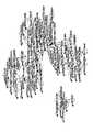 공간 비주얼리제이션들 - 대형 문서 세트내의 메타데이터를 드러내는데 사용되는 비주얼리제이션의 두번째 유형은 공간 비주얼리제이션이다. 공간 비주얼리제이션은 맵 메타포어를 사용해 문서 레코드들을 2 또는 3-차원 공간들에 정렬한다. 다양한 공간 비주얼리제이션 도구들이 다소 차이가 있기는 하지만, 발명자들에게 공지된 것들은 유사한 방법에 따라 맵을 생성한다. 이 방법은 4가지 단계들; 1) 각각의 문서를 위한 의미 벡터(semantic vector)를 계산하는 단계 - 데이터 세트의 문서 각각에 대해, (통상적으로 단어 또는 개념 용법의 히스토그램에 기초해) 문서의 의미 내용을 표현하기 위한 벡터를 계산하는 단계, 2) 유사도 행렬(similarity matrix)을 생성하는 단계 - 각각의 문서를 위한 의미 벡터들을 사용해, 각각의 문서 쌍을 위한 유사도 메트릭을 계산하고 그에 의해 문서의 유사도 행렬을 생성하는 단계, 3) 유사도 행렬에 기초해 2 또는 3차원 투영을 생성하는 단계 - 주성분 분석(principal component analysis) 또는 유사한 방법(예를 들어, 다차원 스케일링)을 사용해, 문서들간의 거리가, 유사도 행렬에 의해 설명되는 바와 같은, 문서들간의 유사도를 가장 잘 반영하도록, 세트의 문서 각각을 위한 위치들을 계산하는 단계, 및 4) 정보 공간의 비주얼리제이션을 드로잉하는 단계 - 2 또는 3차원 투영을 사용해, 문서들을 문서 공간내의 포인트들로서 플로팅하는 단계를 수반한다.Spatial Visualizations-The second type of visualization used to reveal metadata in large document sets is spatial visualization. Spatial visualization uses map metaphors to align document records in two or three-dimensional spaces. Although the various spatial visualization tools are somewhat different, what is known to the inventors creates maps in a similar manner. This method comprises four steps; 1) Computing a semantic vector for each document-for each document in the data set, calculating a vector to represent the semantic content of the document (usually based on the histogram of the word or conceptual usage) 2) generating a similarity matrix, using the semantic vectors for each document, calculating a similarity metric for each document pair and thereby generating a similarity matrix of the document, 3) Generating a two- or three-dimensional projection based on the similarity matrix-using principal component analysis or a similar method (e.g. multidimensional scaling), the distance between documents as described by the similarity matrix Calculating positions for each of the documents in the set to best reflect the similarity between the documents, and 4) visualization of the information space. The step of drawing - with the 2 or 3-D projection, involves the step of floating the article as points in a document space.