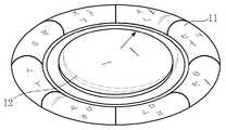 한편, 도 34에 도시된 바와 같이, 원형으로 배치되며 각각 제1문자를 입력하기 위한 1단입력과, 누름에 의해 제2문자를 입력하기 위한 2단입력이 각각 독립적으로 수행가능하게 마련되는 복수의 제1입력키(11)와; 제1입력키(11)의 내부 또는 외부에 마련되어 터치 또는 누름 중 어느 하나의 방법으로 제7문자를 입력하기 위 한 제2입력키(12)를 더 포함할 수 있다.On the other hand, as shown in Fig. 34, a plurality of stages arranged in a circular shape and each one stage input for inputting the first character, and the second stage input for inputting the second character by pressing each of the plurality is provided to be independently performed A