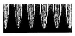 도 20은 이 발명의 일 실시예에 따른 플라즈마 에칭 처리 방법을 행한 3 차원 구조를 가지는 반도체 기판의 일부를 나타내는 전자 현미경 사진이다.20 is an electron micrograph showing a portion of a semiconductor substrate having a three-dimensional structure in which a plasma etching treatment method is performed in accordance with an embodiment of the present invention.