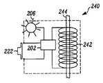 도 12는 도 11에 도시된 태그(230)와 유사한 태그(240)의 또다른 예를 도시한다.  그러나, 대안적인 유도성 코일(242)은 코일(242)의 중심을 통해 태그(240)를 가로지르는 통로를 통해 연장되는 와이어(244)와 같은 도전성 소자와 상호작용하도록 적응된다.FIG. 12 shows another example of a