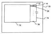 내부 접지 장치의 예는 도 6a 및 도 6b에 도시하였다.  MEMS 기기의 제조의 일부로서, 일반적으로 하나의 기판에 다수의 기기가 제조될 수 있으며, 그 일부를 도 6a에서 도면부호 70으로 나타냈다.  기기를 제조하는 동안에, 도면부호 76과 같은 패드(pad) 또는 탭(tab)을 테스트하기 위해 도선(lead)이 전극층(12), 기계적 또는 미러층(18), 및 버스층(26) 등의 기기의 여러 층에 제공될 수 있다.  기기의 제조에 있어, 전도층의 패터닝 및 에칭 공정의 일부로서, 연결부(74)를 사용하여 모든 패드를 함께 묶는 것과 같이, 이들 패드를 함께 결합하는 것이 가능하다.  이것은 추가적인 처리를 위해 전도층들을 함께 결합할 것이다.Examples of internal grounding devices are shown in FIGS. 6A and 6B. As part of the fabrication of MEMS devices, a number of devices can generally be manufactured on one substrate, a portion of which is indicated at 70 in FIG. 6A. During manufacture of the device, a lead may be used to test a pad or tab, such as