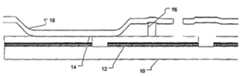 분리층을 제거하는 동안에, 충분한 정전하가 두 전도층의 표면에 축적되어  멤브레인이 활성화되지 않은 전도층(14) 쪽으로 끌어 당겨질 수 있다.  이 상태를 도 2에 나타냈다.  이것은 정상 상태로는 간섭 변조기의 활성 상태이지만, 다른 점은 전위가 변화할 때 멤브레인이 산화물의 층(12)으로부터 해방되지 않는 것이다.  멤브레인은 영구적으로 활성 상태를 나타낸다.  이것은 전도성의 층(12)와 전도성의 멤브레인(18) 사이의 정전력(electrostatic force)에 의해 심화되는, 종종 정지 마찰(stiction)이라고 하는 고착(sticking)과 마찰(friction)의 결합에 의해 유발될 수 있다. During removal of the separation layer, sufficient static charge may accumulate on the surfaces of the two conductive layers, attracting the membrane towards the inactive