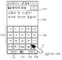 먼저, 문자입력메뉴를 선택하면 신호 입력을 위한 키패드(100)와 입력문자 출력창(200)이 터치스크린 상에 디스플레이된다. 상기 키패드(100)에는 문자 입력을 위한 다수 개의 문자입력키(110)와 각종 기능을 수행하기 위한 기능키(120)들이 구비되는데, 상기 기능키(120)로는 입력되는 문자의 종류를 변경하기 위한 변환키(122)와 커서(210)의 위치를 이동시키기 위한 커서이동키(124)와 입력된 문자를 삭제하기 위한 삭제키(126)와 줄바꿈을 위한 엔터키(128) 등이 포함될 수 있다. 키패드(100) 및 입력문자 출력창(200)이 디스플레이된 상태에서 사용자가 키패드(100)를 조작하여 문자를 입력하면, 도 1에 도시된 바와 같이 입력문자 출력창(200)에는 사용자가 작성한 문장이 출력된다.First, when the character input menu is selected, the