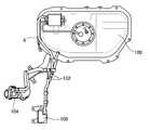 이러한 점을 고려하여 종래 연료탱크용 에어필터의 장착 상태를 살펴보면, 도 4에서와 같이, 연료탱크(10)의 상측에 에어 호스(102)를 연결하고 이 에어 호스(102)의 단부는 연료 주입구(104)에 위치하여 연료 탱크(100)의 내부에 외부의 공기가 유입될 수 있도록 하고 있다.Considering this point, the mounting state of the conventional fuel tank air filter is as follows. As shown in FIG. 4, the